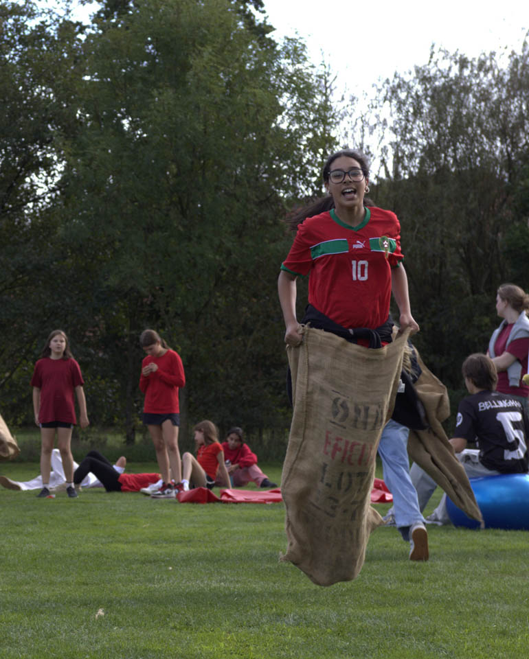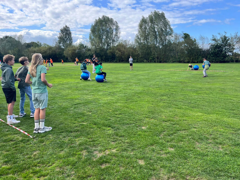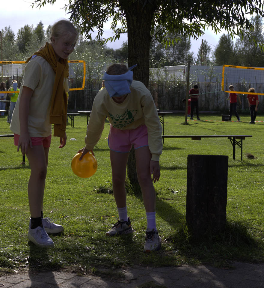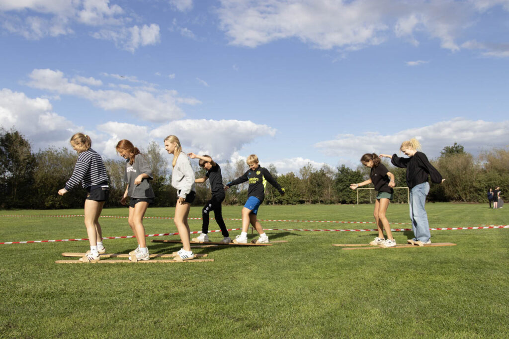 Opgeladen door een rustmoment en de lunch was iedereen klaar voor de Variaton: 6 sport- en spelonderdelen per klas waarbij het doel was om door goed samen te werken zoveel mogelijk punten te halen. Dit jaar had geen enkele mentor vooraf met de klas geoefend en was er dus echt sprake van een eerlijke strijd! Het nieuwe onderdeel ‘blind bowlen’ bleek niet eenvoudig: want hoe leg je aan een klasgenoot met blinddoek uit hoe hij via verschillende obstakels en na het draaien van een rondje een strike moet gooien? Goed communiceren bleek de oplossing!