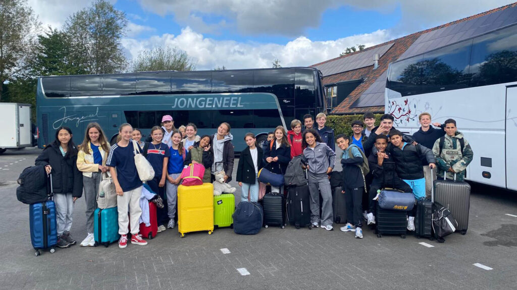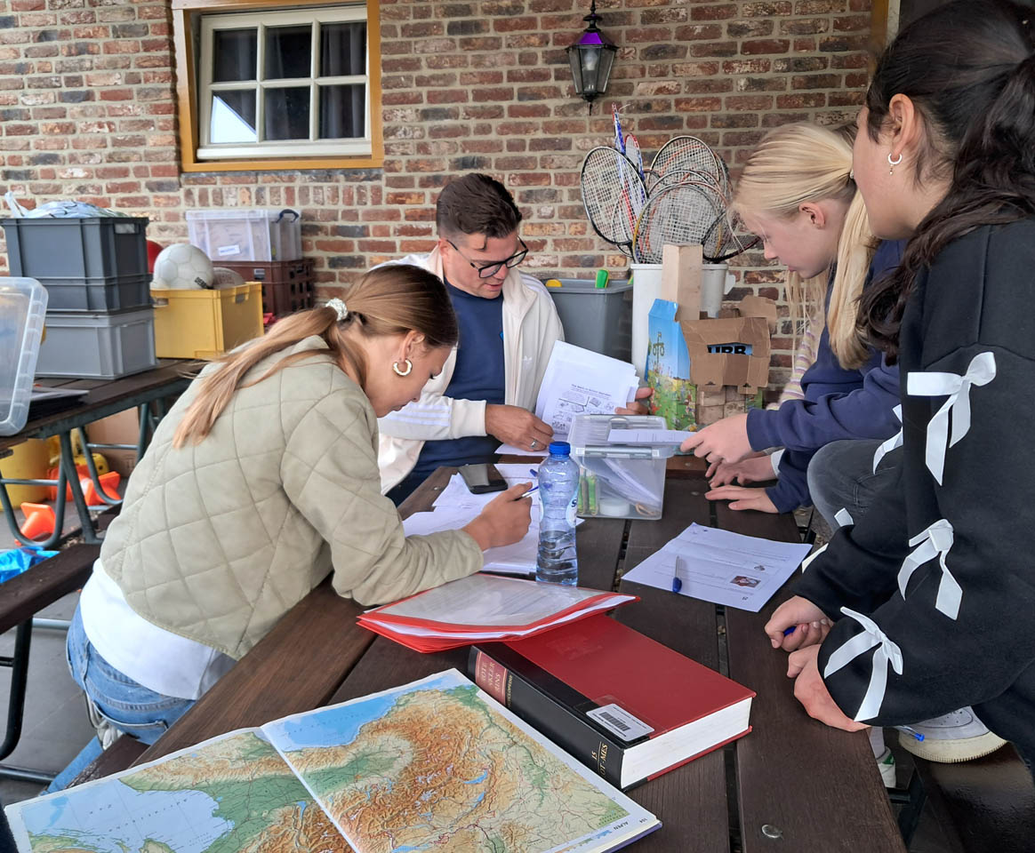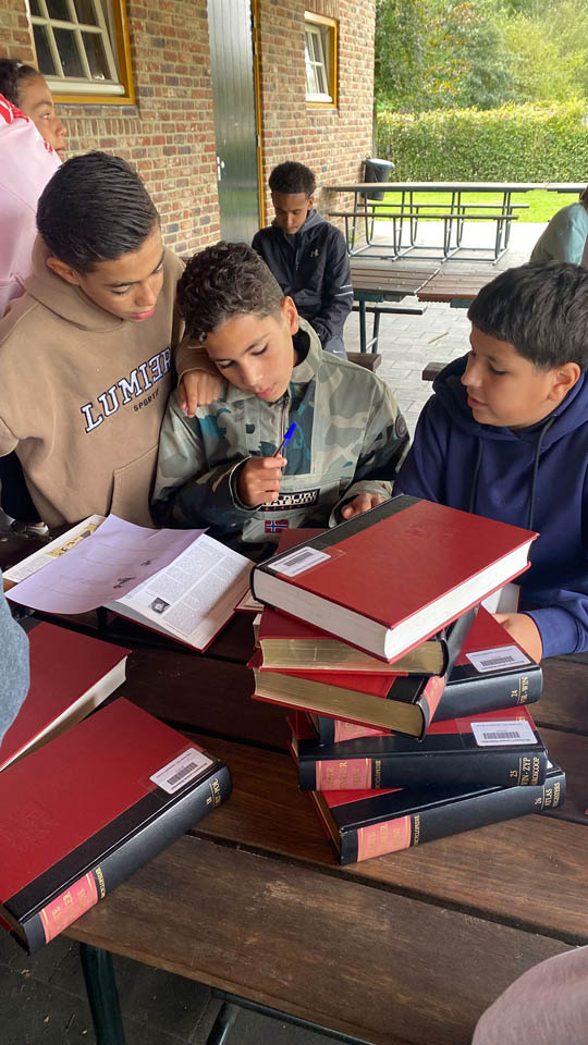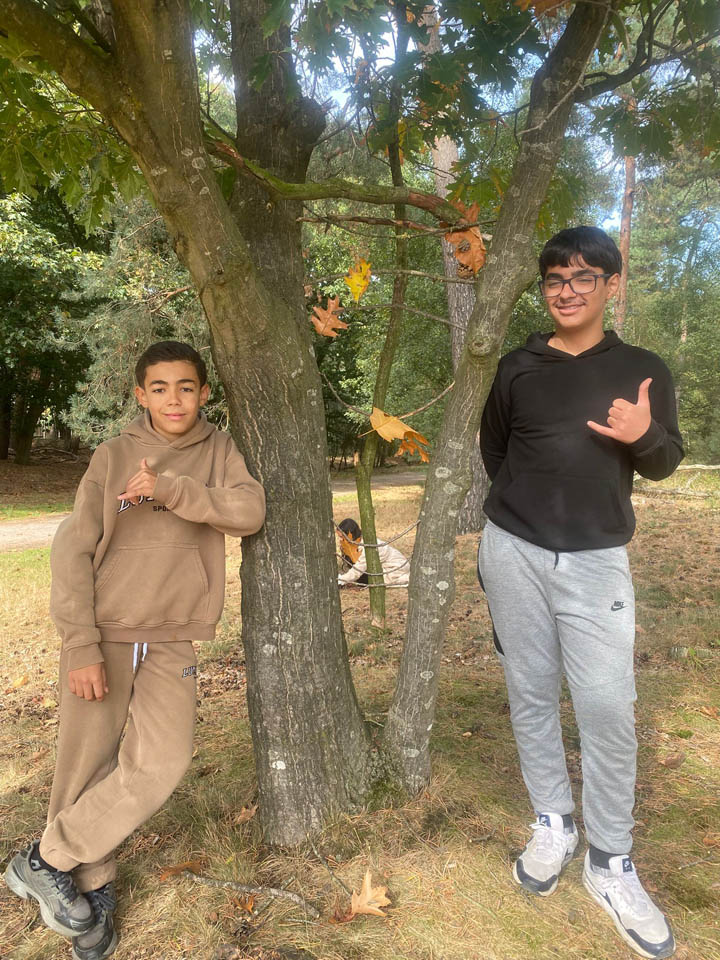 Terwijl dit verslagje geschreven wordt, zoeken de leerlingen hun bed op na deze eerste dag. Het lijkt wel alsof we al langer weg zijn, zoveel hebben we al gedaan vandaag! De reis van Rotterdam naar ‘De Hoof’ verliep soepel; geen file onderweg en het was gezellig in de bus. Bij aankomst stond er al van alles klaar voor het middagprogramma. Maar eerst was het tijd om de accommodatie te verkennen, de kamers op te zoeken en de bedden op te maken. Bij de lunch legden de mentoren aan hun klas het keuzeprogramma in het ‘werkoverzicht’ uit. Want tijdens alle vrije tijdmomenten is er van alles te doen naar keuze: je herbruikbare lunchzakje versieren, gezelschapsspelletjes doen, sporten, lezen, knutselen, mediteren, karaoke en een kamerchallenge.